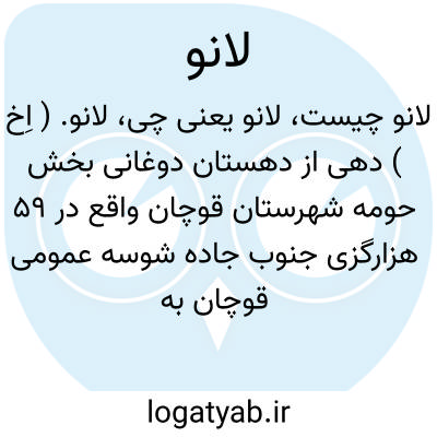 لانو. ( اِخ ) دهی از دهستان دوغانی بخش حومه شهرستان قوچان واقع در 59 هزارگزی جنوب جاده شوسه عمومی قوچان به مشهد. کوهستانی، معتدل دارای 165 تن سکنه، شیعه، کردی قوچانی زبان. راه آن مالرو. آب آن از قنات. محصول آن تریاک و غلات و شغل اهالی زراعت است. ( فرهنگ جغرافیائی ایران ج 9 ).