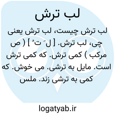 لب ترش. [ ل َ ت ُ ] ( ص مرکب ) کمی ترش. که کمی ترش است. مایل به ترشی. می خوش. که کمی به ترشی زند. ملس: شرابی لب ترش، که کمی ترش است.