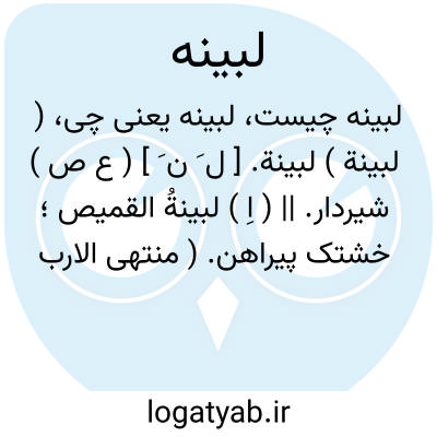 ( لبینة ) لبینة. [ ل َ ن َ ] ( ع ص ) شیردار. || ( اِ ) لبینةُ القمیص؛ خشتک پیراهن. ( منتهی الارب ).