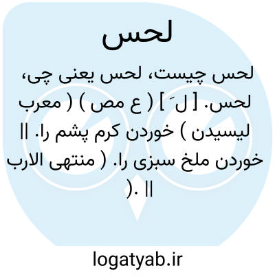 لحس. [ ل َ ] ( ع مص ) ( معرب لیسیدن ) خوردن کرم پشم را. || خوردن ملخ سبزی را. ( منتهی الارب ). || لیسیدن. ( منتهی الارب ) ( تاج المصادر ). لَحْسَة. لُحْسَة. لهس. ملحس.