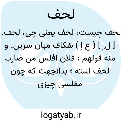 لحف. [ ل ِ ] ( ع اِ ) شکاف میان سرین. و منه قولهم: فلان افلس من ضارب لحف استه؛ بدانجهت که چون مفلسی چیزی نیابد که بدان سرین را بپوشد، دستش بر سرین افتد. || بُن کوه. ( منتهی الارب ). دامنه ( در کوه ).