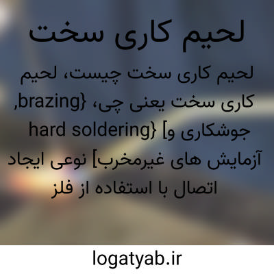 {brazing, hard soldering} [جوشکاری و آزمایش های غیرمخرب] نوعی ایجاد اتصال با استفاده از فلز پرکننده در دمای بالاتر از 450 درجۀ سلسیوس و زیر نقطۀ ذوب فلز پایه که در آن نفوذ در اتصال براثر خاصیت مویینگی است
