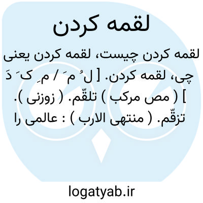 لقمه کردن. [ ل ُ م َ / م ِ ک َ دَ ] ( مص مرکب ) تلقّم. ( زوزنی ). تزقّم. ( منتهی الارب ): عالمی را لقمه کرد و درکشید معده اش نعره زنان هل من مزید.مولوی.