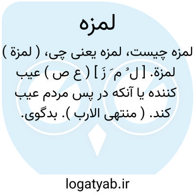 ( لمزة ) لمزة. [ ل ُ م َ زَ ] ( ع ص ) عیب کننده یا آنکه در پس مردم عیب کند. ( منتهی الارب ). بدگوی. بدگوی در روی. ( از دهار ). عیب نهنده. بدگوی در قفا. مغتاب در پشت سر. ( قاموس ).