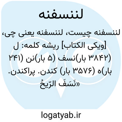 کندن. پراکندن. «نَسَفَ الرّیحُ التُّرابَ: فَرَّقَهُّ وَ ذَرَّهُ» باد خاک را پراکند. «نَسَفَ اِلْبناء نَسْفاً: قَلَعَهُ مَنْ اَصْلِهِ». آن را ریز ریز کرده سپس بطور کامل در دریا می‏پراکنیم. *.. آیات در باره ریزریز و پراکنده شدن کوهها در قیامت است که در «جبل» بطور مشروح گفته‏ایم.
