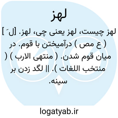 لهز. [ل َ ] ( ع مص ) درآمیختن با قوم. در میان قوم شدن. ( منتهی الارب ) ( منتخب اللغات ). || لگد زدن بر سینه. مشت بر سینه زدن. لکز. مشت بر تندی زیر بناگوش و بر گردن زدن. ( منتهی الارب ). مشت بر گردن زدن. ( اززوزنی ). || نیزه بر سینه زدن. ( منتهی الارب ). مشت و نیزه بر سینه زدن. ( منتخب اللغات ). || به سر زدن شتربچه و بره پستان مادر را وقت شیر مکیدن. ( منتهی الارب ). || بازداشتن. ( زوزنی ). || دوموی شدن. ( منتهی الارب ). آمیختن سپیدی موی با سیاهی. ( منتهی الارب ) ( منتخب اللغات ).
