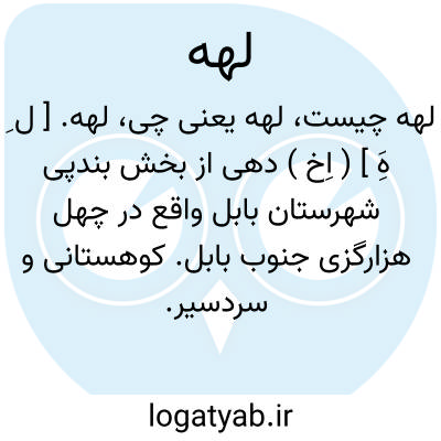 لهه. [ ل ِ هَِ ] ( اِخ ) دهی از بخش بندپی شهرستان بابل واقع در چهل هزارگزی جنوب بابل. کوهستانی و سردسیر. دارای 220 تن سکنه. آب آن از چشمه. محصول آنجا غلات و لبنیات. شغل اهالی زراعت دیمی و گله داری و راه آن مالرو است و زمستان اهالی عموماً در قشلاقات بندپی به زراعت مشغولند. ( از فرهنگ جغرافیائی ایران ج 3 ).