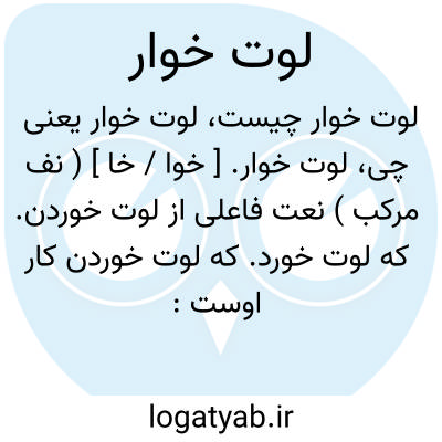 لوت خوار. [ خوا / خا ] ( نف مرکب ) نعت فاعلی از لوت خوردن. که لوت خورد. که لوت خوردن کار اوست: هرکه روزی برّه ای تنها نخورد در میان لوت خواران مرد نیست.بسحاق اطعمه.و رجوع به لوت شود.