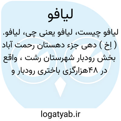 لیافو. ( اِخ ) دهی جزء دهستان رحمت آباد بخش رودبار شهرستان رشت، واقع در 48هزارگزی باختری رودبار و دوازده هزارگزی امامزاده هاشم، در خاور سفیدرود. کوهستانی، معتدل و مالاریائی. دارای 397 تن سکنه.آب آن از سفیدرود و چشمه. محصول آنجا برنج، چای، ابریشم، لبنیات و زغال. شغل اهالی زراعت و گله داری و مکاری و راه آن مالرو است. قریه کوچک دولایم جزء این ده منظور شده است. ( از فرهنگ جغرافیائی ایران ج 2 ).