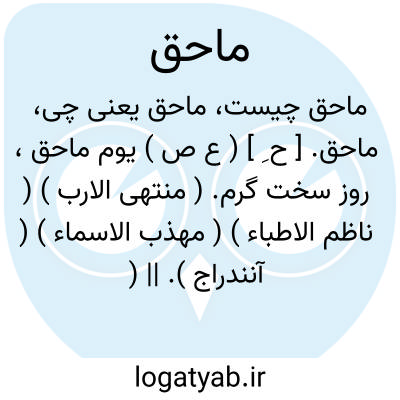 ماحق. [ ح ِ ] ( ع ص ) یوم ماحق، روز سخت گرم. ( منتهی الارب ) ( ناظم الاطباء ) ( مهذب الاسماء ) ( آنندراج ). || ( اِ ) شدت گرمای تابستان. یقال جأنا فی ماحق الصیف. ( منتهی الارب ) ( ناظم الاطباء ). شدت گرمای تابستان. ( آنندراج ).