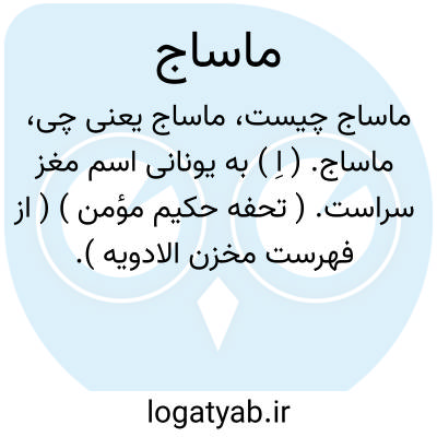 ماساج. ( اِ ) به یونانی اسم مغز سراست. ( تحفه حکیم مؤمن ) ( از فهرست مخزن الادویه ).