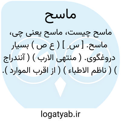 ماسح. [ س ِ ] ( ع ص ) بسیار دروغگوی. ( منتهی الارب ) ( آنندراج ) ( ناظم الاطباء ) ( از اقرب الموارد ). || بسیار کشنده. ( از اقرب الموارد ). || بسیارگاینده. ( منتهی الارب ) ( آنندراج ) ( از ذیل اقرب الموارد ). بسیار گاینده و کثیرالجماع. ( ناظم الاطباء ). || شانه کننده. ( منتهی الارب ) ( ناظم الاطباء ) ( آنندراج ). || شتری که پنجم سپل او بر آرنج وی درخورده و خون آلود نکرده باشد. ( منتهی الارب ) ( آنندراج ) ( ناظم الاطباء ). هرگاه آرنج شتر به پنجم سپل وی برخورد و آن را خون آلود نکند، ماسح گویند. ( از اقرب الموارد ). بریدگی دو شوخ سینه شتر از آسیب آرنج وی که خون از وی بر نیاید. ( یادداشت به خط مرحوم دهخدا ). و رجوع به حازّ شود.