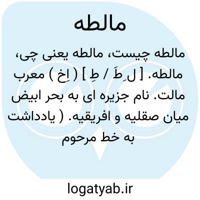 مالطه. [ ل ِطَ / طِ ] ( اِخ ) معرب مالت. نام جزیره ای به بحر ابیض میان صقلیه و افریقیه. ( یادداشت به خط مرحوم دهخدا ). و رجوع به مالت شود.