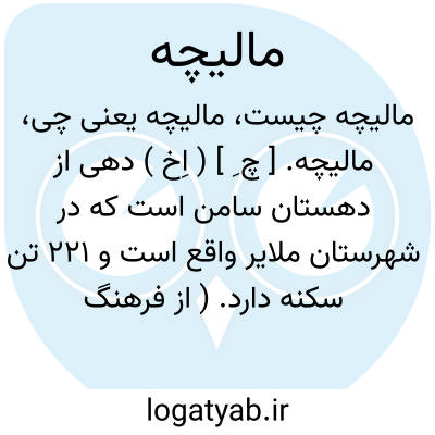 مالیچه. [ چ ِ ] ( اِخ ) دهی از دهستان سامن است که در شهرستان ملایر واقع است و 221 تن سکنه دارد. ( از فرهنگ جغرافیایی ایران ج 5 ).