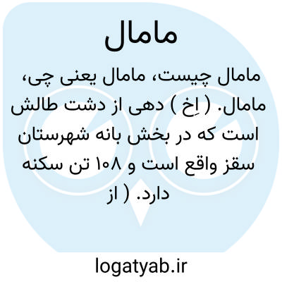 مامال. ( اِخ ) دهی از دشت طالش است که در بخش بانه شهرستان سقز واقع است و 108 تن سکنه دارد. ( از فرهنگ جغرافیایی ایران ج 5 ).
