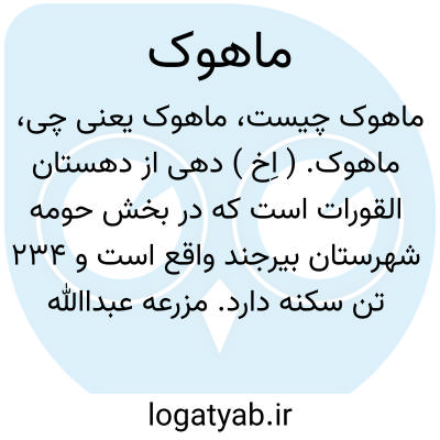 ماهوک. ( اِخ ) دهی از دهستان القورات است که در بخش حومه شهرستان بیرجند واقع است و 234 تن سکنه دارد. مزرعه عبداﷲ جزء این ده است. ( از فرهنگ جغرافیایی ایران ج 9 ).