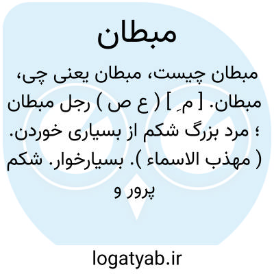 مبطان. [ م ِ ] ( ع ص ) رجل مبطان؛ مرد بزرگ شکم از بسیاری خوردن. ( مهذب الاسماء ). بسیارخوار. شکم پرور و کلان شکم. ( منتهی الارب ) ( آنندراج ). شکم بنده. شکم خوار. شکم پرور. ( یادداشت بخط مرحوم دهخدا ). آنکه از پرخوری شکم وی همیشه کلان می باشد و شکم پرست. ( ناظم الاطباء ).