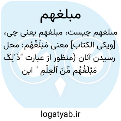 [ویکی الکتاب] معنی مَبْلَغُهُم: محل رسیدن آنان (منظور از عبارت "ذَ ٰلِکَ مَبْلَغُهُم مِّنَ ﭐلْعِلْمِ " این است که آخرین مرز دانش و معرفت آنان همین متاع زود گذر دنیا ست و از درک سعادت اخروی غافلند)