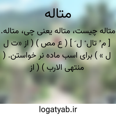 متاله. [ م ُ تال ْ ل َ ] ( ع مص ) ( از «ت ل ل » ) برای اسب ماده نر خواستن. ( منتهی الارب ) ( از اقرب الموارد ) ( آنندراج ). نر خواستن برای اسب ماده. ( ناظم الاطباء ).