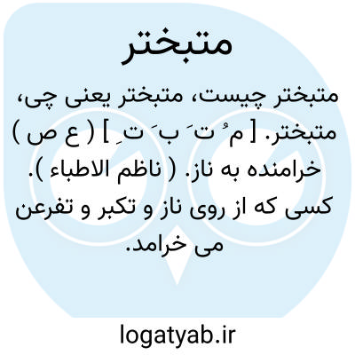 متبختر. [ م ُ ت َ ب َ ت ِ ] ( ع ص ) خرامنده به ناز. ( ناظم الاطباء ). کسی که از روی ناز و تکبر و تفرعن می خرامد. ( ناظم الاطباء ). و رجوع به تبختر شود.