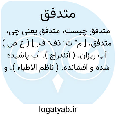 متدفق. [ م ُ ت َ دَف ْ ف ِ ] ( ع ص ) آب ریزان. ( آنندراج ). آب پاشیده شده و افشانده. ( ناظم الاطباء ). و رجوع به تدفق شود.