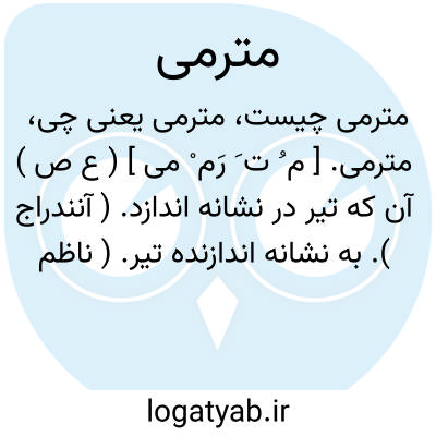 مترمی. [ م ُ ت َ رَم ْ می ] ( ع ص ) آن که تیر در نشانه اندازد. ( آنندراج ). به نشانه اندازنده تیر. ( ناظم الاطباء ). و رجوع به ترمی شود.
