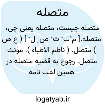 متصله.[ م ُت ْ ت َ ص ِ ل َ ] ( ع ص ) متصل. ( ناظم الاطباء ). مؤنث متصل. رجوع به قضیه متصله در همین لغت نامه شود.