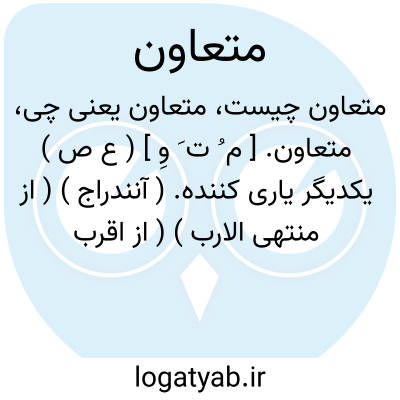 متعاون. [ م ُ ت َ وِ ] ( ع ص ) یکدیگر یاری کننده. ( آنندراج ) ( از منتهی الارب ) ( از اقرب الموارد ). هم عهد در معاونت و یاری یکدیگر. ( ناظم الاطباء ). و رجوع به تعاون شود.