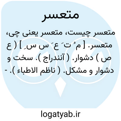 متعسر. [ م ُ ت َ ع َ س س ِ ] ( ع ص ) دشوار. ( آنندراج ). سخت و دشوار و مشکل. ( ناظم الاطباء ).