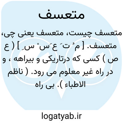 متعسف. [ م ُ ت َ ع َس ْ س ِ ] ( ع ص ) کسی که درتاریکی و بیراهه، و در راه غیر معلوم می رود. ( ناظم الاطباء ). بی راه رونده و خمنده از راه. ( از منتهی الارب ). منحرف شونده و عدول کننده از راه. ( از اقرب الموارد ): چنانکه بعضی متعسفان تنوره آتش را به دریای پر از مشک تشبیه کرده اند. ( المعجم ص 257 ). || آزارنده و ستم کننده و ظالم و زبردست. ( ناظم الاطباء ) ( از منتهی الارب ) ( از اقرب الموارد ). || ملول و غمگین بر اتلاف و زیان. ( ناظم الاطباء ) ( منتهی الارب ). و رجوع به تعسف شود. || بی راه. باطل: و بر سر منبر منحرف بر نصب مذهب متعسف باطل خود فصلی بگفت. ( جهانگشای جوینی ).