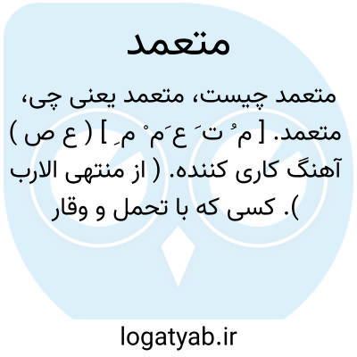 متعمد. [ م ُ ت َ ع َم ْ م ِ ] ( ع ص ) آهنگ کاری کننده. ( از منتهی الارب ). کسی که با تحمل و وقار کار می کند و با قصد و آهنگ مشغول کار می گردد. کسی که جد و جهد می کند و بطور عمد و دانسته کار می کند. ( ناظم الاطباء ). قصد کننده کاری را. و رجوع به تعمد شود.
