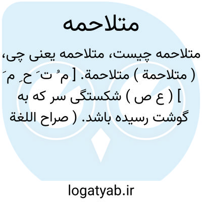 ( متلاحمة ) متلاحمة. [ م ُ ت َ ح ِ م َ ] ( ع ص ) شکستگی سر که به گوشت رسیده باشد. ( صراح اللغة ). قسمتی از شکستگی سر که جراحت از گوشت بگذرد و بر آن پوست که بر استخوان پوشیده است برسد. ( ذخیره خوارزمشاهی ). شجه، یعنی شکستگی که به گوشت رسیده باشد. ( منتهی الارب ) ( آنندراج ) ( از اقرب الموارد ). شکستگی که بگوشت رسد و به سمحاق نرسد. ( بحرالجواهر ). آن جراحت که از پوست بگذرد و بسمحاق نرسد. ( مهذب الاسماء ). جارمه. باذله ( در شکستگی سر ). ( یادداشت به خط مرحوم دهخدا ). || امراءة متلاحمة؛ زن تنگ کس از بسیاری گوشت کرانه آن. ( منتهی الارب ) ( آنندراج ) ( از اقرب الموارد ). زنی که فرج وی از بسیاری گوشت کرانه آن تنگ باشد.( ناظم الاطباء ). زن تنگ فرج. ( مهذب الاسماء ). || زن که کسی جماع آن نتواند. ( منتهی الارب ) ( آنندراج ). زنی که کس با وی جماع نتواند. ( ناظم الاطباء ).
