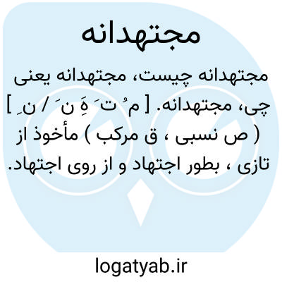 مجتهدانه. [ م ُ ت َ هَِ ن َ / ن ِ ] ( ص نسبی، ق مرکب ) مأخوذ از تازی، بطور اجتهاد و از روی اجتهاد. ( ناظم الاطباء ).