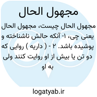 ۱- آنکه حالش ناشناخته و پوشیده باشد. ۲ - ( داریه ) روایی که دو تن یا بیش از او روایت کنند ولی به او وثوق نباشد بخلاف مجهول العین ( کسی که علما او را نشناسند و تنها یک راوی حدیث از او روایت کند ).