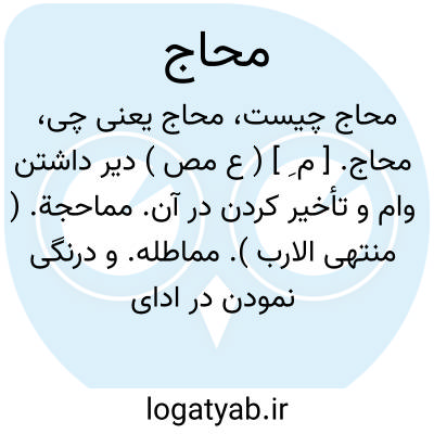 محاج. [ م ِ ] ( ع مص ) دیر داشتن وام و تأخیر کردن در آن. مماحجة. ( منتهی الارب ). مماطله. و درنگی نمودن در ادای دین و تأخیر کردن. ( ناظم الاطباء ). دیر داشتن وام به چیزی را و تأخیر کردن. ( آنندراج ).