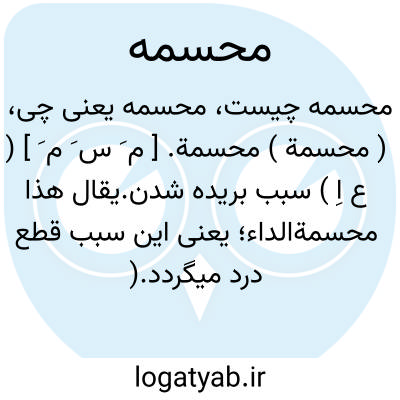( محسمة ) محسمة. [ م َ س َ م َ ] ( ع اِ ) سبب بریده شدن.یقال هذا محسمةالداء؛ یعنی این سبب قطع درد میگردد.( از منتهی الارب ). چیزی که سبب میشود قطع چیزی را. || آن چیزی که داغ میکند. ( ناظم الاطباء ).