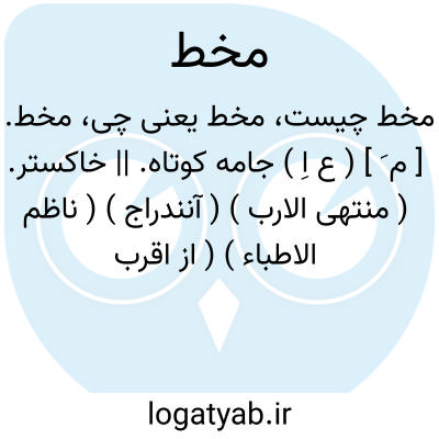 مخط. [ م َ ] ( ع اِ ) جامه کوتاه. || خاکستر. ( منتهی الارب ) ( آنندراج ) ( ناظم الاطباء ) ( از اقرب الموارد ). || سیر شتاب. ( منتهی الارب ) ( ناظم الاطباء ) ( از اقرب الموارد ) || مشابهت فرزند به پدر. ( ناظم الاطباء ). || ( مص ) شتافتن شتر را. ( آنندراج ) ( ازمنتهی الارب ) ( از اقرب الموارد ). بشتاب بردن شتر کسی را. ( ناظم الاطباء ). || کشیدن. ( زوزنی ). کندن و کشیدن چیزی را. ( از تاج العروس ج 5 ص 220 ) ( از اقرب الموارد ) ( از محیط المحیط ). کشیدن و دراز کردن شتر «کذا». ( آنندراج ) ( از منتهی الارب ). کشیدن و دراز کردن چیزی را. ( ناظم الاطباء ). || بیرون گذشتن تیر از نشانه. ( منتهی الارب ) ( آنندراج ) ( از اقرب الموارد )( ناظم الاطباء ). || کشیدن کمان و شمشیر و جز آن. ( منتهی الارب ) ( آنندراج ) ( از اقرب الموارد ) ( ناظم الاطباء ). || ستیهیدن گشن بر ناقه در ضراب.( منتهی الارب ) ( آنندراج ) ( از ذیل اقرب الموارد ). ستیهیدن گشن بر ماده شتر در ضراب. ( ناظم الاطباء ). || مخاط از بینی بیفکندن. ( زوزنی ). بینی پاک کردن. ( تاج المصادر بیهقی ) ( دهار ). انداختن آب بینی را. || پاک کردن ناتج آنچه بر بینی بچه نوزاد باشد از مشیمه و آب و جز آن. ( منتهی الارب ) ( آنندراج ) ( از اقرب الموارد ) ( از ناظم الاطباء ). || شتاب سیر کردن. ( منتهی الارب ) ( آنندراج ) ( از اقرب الموارد ). به شتاب سیر کردن. ( ناظم الاطباء ). || مانستن پسر پدر را. ( منتهی الارب ) ( آنندراج ) ( از اقرب الموارد ). مانا شدن پسر مر پدر خود را. ( از ناظم الاطباء ).