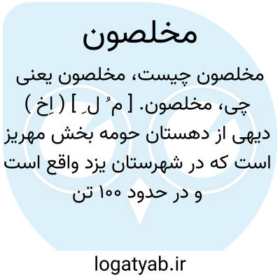 مخلصون. [ م ُ ل ِ ] ( اِخ ) دیهی از دهستان حومه بخش مهریز است که در شهرستان یزد واقع است و در حدود 100 تن سکنه دارد. ( از فرهنگ جغرافیایی ایران ج 10 ).
