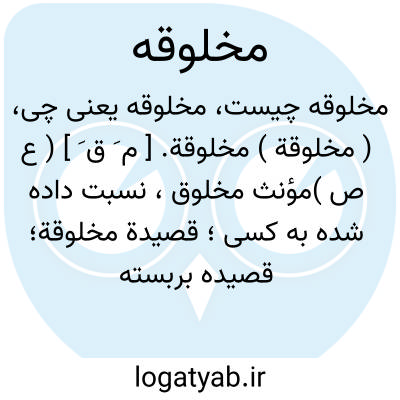 ( مخلوقة ) مخلوقة. [ م َ ق َ ] ( ع ص )مؤنث مخلوق، نسبت داده شده به کسی؛ قصیدة مخلوقة؛ قصیده بربسته بسوی کسی که نگفته باشد. ( منتهی الارب ) ( از اقرب الموارد ). مؤنث مخلوق. ج، مخالیق: قصیدة مخلوقة؛ قصیده ای که نسبت دهند آن را به کسی که نگفته باشد. ( ناظم الاطباء ). رجوع به مخلوق ( معنی آخر ) شود.