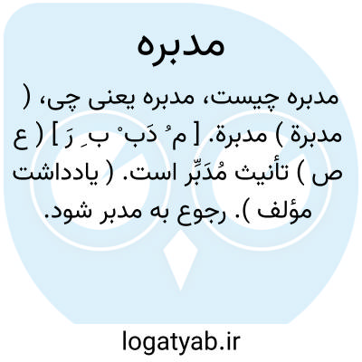( مدبرة ) مدبرة. [ م ُ دَب ْ ب ِ رَ ] ( ع ص ) تأنیث مُدَبِّر است. ( یادداشت مؤلف ). رجوع به مدبر شود.