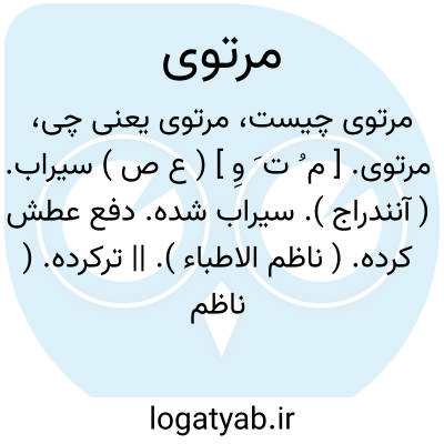 مرتوی. [ م ُ ت َ وِ ] ( ع ص ) سیراب. ( آنندراج ). سیراب شده. دفع عطش کرده. ( ناظم الاطباء ). || ترکرده. ( ناظم الاطباء ). || رسن تافته سطبر تاه گردیده. ( از ناظم الاطباء )( آنندراج ). || بندهای مرد که سطبر باشد. ( آنندراج ). مفصل معتدل و سطبر گشته. ( ناظم الاطباء ).
