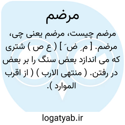 مرضم. [ م ِ ض َ ] ( ع ص ) شتری که می اندازد بعض سنگ را بر بعض در رفتن. ( منتهی الارب ) ( از اقرب الموارد ).