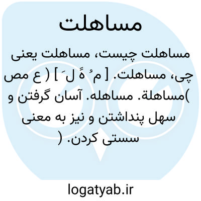مساهلة. [ م ُ هََ ل َ ] ( ع مص ) مساهلت. مساهله. آسانی کردن با کسی. ( منتهی الارب ). با کسی آسان فراگرفتن. ( المصادر زوزنی ) ( تاج المصادر بیهقی ) ( دهار ). نرم کردن و آسان گرفتن با کسی. ( اقرب الموارد ). سهل انگاری کردن. سهل گرفتن. آسان گرفتن. و رجوع به مساهلت شود.
