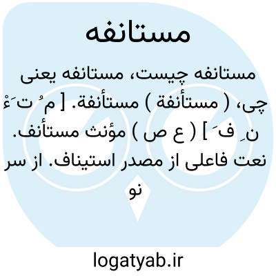 ( مستأنفة ) مستأنفة. [ م ُ ت َءْ ن ِ ف َ ] ( ع ص ) مؤنث مستأنف. نعت فاعلی از مصدر استیناف. از سر نو گیرنده و آغازکننده. ( غیاث ) ( آنندراج ).... رجوع به مستأنف و استیناف شود. || رام و آهسته. || به یکسو استاده شونده. || مجازاً به معنی جدا و علی حده. ( غیاث ) ( آنندراج ).
