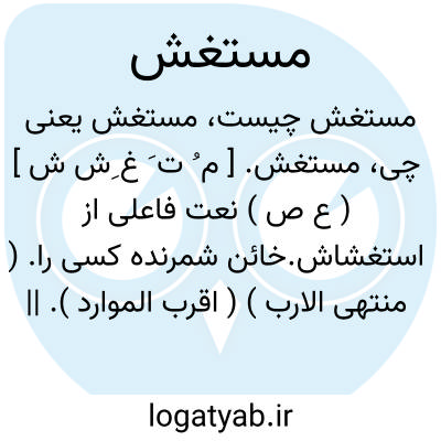 مستغش. [ م ُ ت َ غ ِش ش ] ( ع ص ) نعت فاعلی از استغشاش.خائن شمرنده کسی را. ( منتهی الارب ) ( اقرب الموارد ). || گمان غش و خیانت کردن برنده کسی را. ( منتهی الارب ) ( اقرب الموارد ). و رجوع به استغشاش شود.