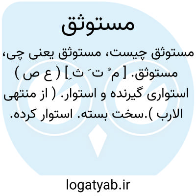 مستوثق. [ م ُ ت َ ث ِ] ( ع ص ) استواری گیرنده و استوار. ( از منتهی الارب ).سخت بسته. استوار کرده. || وثیقه گیرنده از کسی. ( از اقرب الموارد ). و رجوع به استیثاق شود.