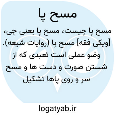 [ویکی فقه] مسح پا (قرآن). مسح پا تا برآمدگی آن، در وضو برای نماز واجب است.