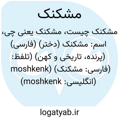 اسم: مشکنک (دختر) (فارسی) (پرنده، تاریخی و کهن) (تلفظ: moshkenk) (فارسی: مشکنک) (انگلیسی: moshkenk)