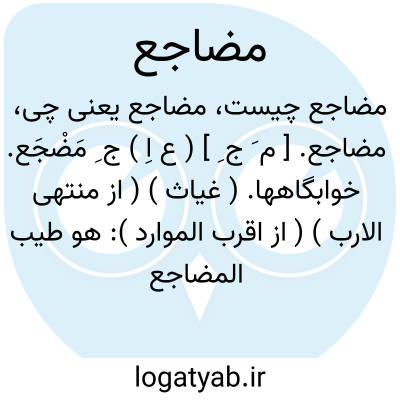 مضاجع. [ م ُ ج ِ ] ( ع ص ) همخوابه. ( منتهی الارب ) ( از اقرب الموارد ) ( آنندراج ) ( ناظم الاطباء ). || پهلوبرزمین نهنده. ( از منتهی الارب ) ( از اقرب الموارد ). و رجوع به مضاجعة شود.