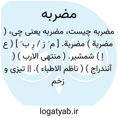 ( مضربة ) مضربة. [ م َ رَ / رِ ب َ ] ( ع اِ ) شمشیر. ( منتهی الارب ) ( آنندراج ) ( ناظم الاطباء ). || تیزی و زخم گاه شمشیر. ( منتهی الارب ) ( از اقرب الموارد ) ( آنندراج ) ( از ناظم الاطباء ).